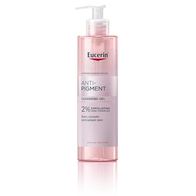 Представяме ти почистващия гел Eucerin® Anti-Pigment, жизненоважна стъпка в рутинната грижа за кожата за оптимално усвояване на съставката Thiamidol® в Anti-Pigment серията от продукти. AHA ексфолиране, гарантиращо, че Thiamidol® може ефективно да намали тъмните петна само за една седмица.