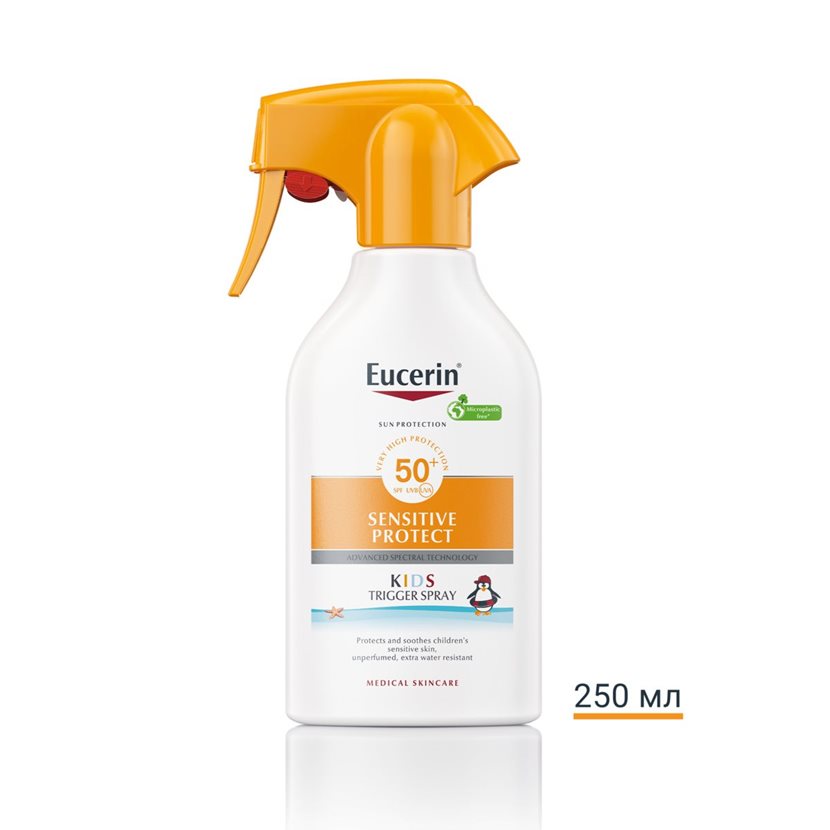 Слънцезащитен продукт за деца UV светлината е основната причина за изгаряне, но високоенергийната видима (HEVIS) светлина също може да предизвика образуването на свободни радикали, които допълнително натоварват кожата. Eucerin детски слънцезащитен спрей с помпа Sensitive Protect SPF 50+ е слънцезащитен продукт за деца, специално формулиран за успокояване на чувствителната кожа и я защитава от изгаряне и дългосрочно увреждане, причинено от слънцето. Също така е подходящ за атопична кожа. Advanced Spectral Technology комбинира широколентови и фотостабилни UVA/UVB филтри1 за много висока защита от UV с Ликохалкон А, за да неутрализира свободните радикали, причинени от UV и HEVIS светлината. Слънцезащитният крем за деца също така съдържа глициритинова киселина, която спомага механизмите на кожата за възстановяване на ДНК. Без съдържание на ароматизатори и изключително водоустойчива, формулата съдържа и технологията `Anti-Stain After Wash’* на Eucerin и се предлага като лесен за нанасяне спрей с помпа. Eucerin детски слънцезащитен спрей с помпа Sensitive Protect SPF 50+ е подходящ за чувствителната детска кожа, включително при атопичен дерматит, което е доказано в клинични и дерматологични проучвания. *Спомага за намаляване на петната от слънцезащитен продукт след пране. 1 Изпълнение на високите стандарти за UVA и UVB защита, определени от Cosmetics Europe. Нивата на UVA защита са по-високи от препоръчаните от ЕС.