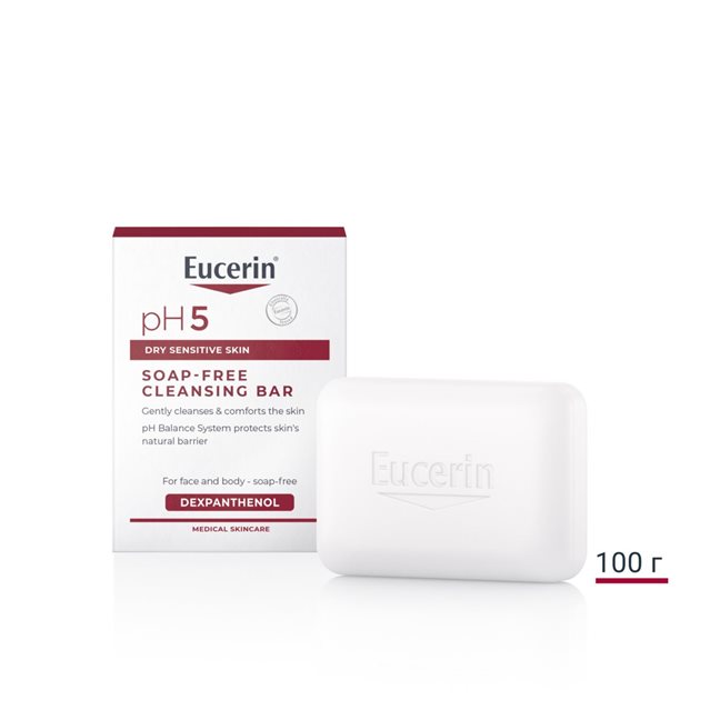 Всички продукти за почистване Eucerin pH5 са специално разработени да съчетават нежно почистване с отлична защита на кожата и клинично доказана кожна поносимост. Eucerin pH5 Сапун за чувствителна кожа е подходящ за честа употреба дори върху кожа, която обикновено има непоносимост към сапун.
