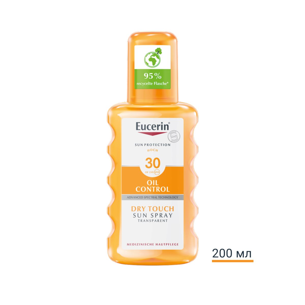 Eucerin Прозрачен слънцезащитен спрей за тяло SPF 30 е слънцезащитен спрей за тяло, който успокоява и предпазва чувствителната кожа, включително и кожа, склонна към акне. Advanced Spectral Technology комбинира широколентови и фотостабилни UVA/UVB филтри1 за висока UV защита с Ликохалкон A за неутрализиране на свободните радикали, активирани от UV лъчи и HEVIS светлина.